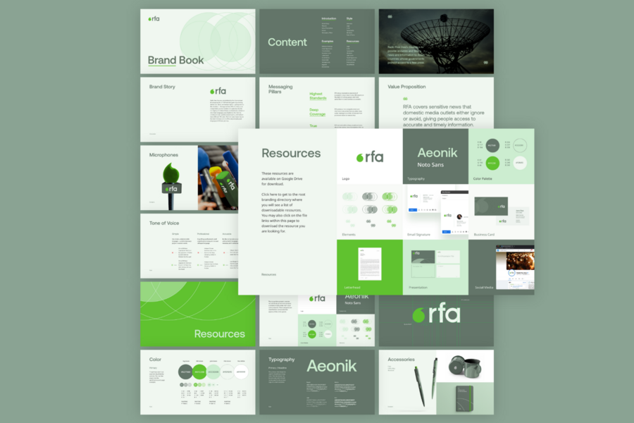 RFA 為國際公共媒體機構。Level™ 重塑其品牌識別,兼具新聞專業、公信力與現代感,支援其跨文化、跨語系的多元溝通與行銷需求。