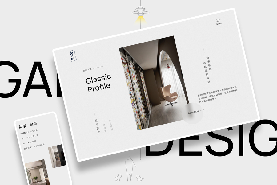 甘納設計擅長讓空間帶領屋主感受故事與生活感,這次我們以「XYZ 軸導向」打造全新的網頁瀏覽邏輯,讓使用者在平面螢幕上也能感受到如同進入室內空間般的移動感。透過水平、垂直與深度位移的動態組合,作品瀏覽更具有節奏、層次與沉浸性。