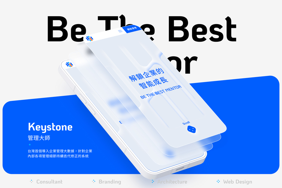 Keystone 是台灣首批導入企業管理大數據的系統,透過分析團隊能力與組織運作狀態,協助企業做出更精準的管理決策。我們從品牌定位出發,提煉「Be The Best Mentor」作為核心標語,明確傳達 Keystone 能解鎖企業智能成長的價值。網站以簡潔的資訊架構、SaaS 式引導流程與可視化的功能展示,協助使用者快速理解產品的核心模組、方案比較與試用流程。同時透過柔和科技感與動態引導,建立可信賴、清晰且易上手的產品印象,使網站成為企業接觸 Keystone 的第一個決策入口。