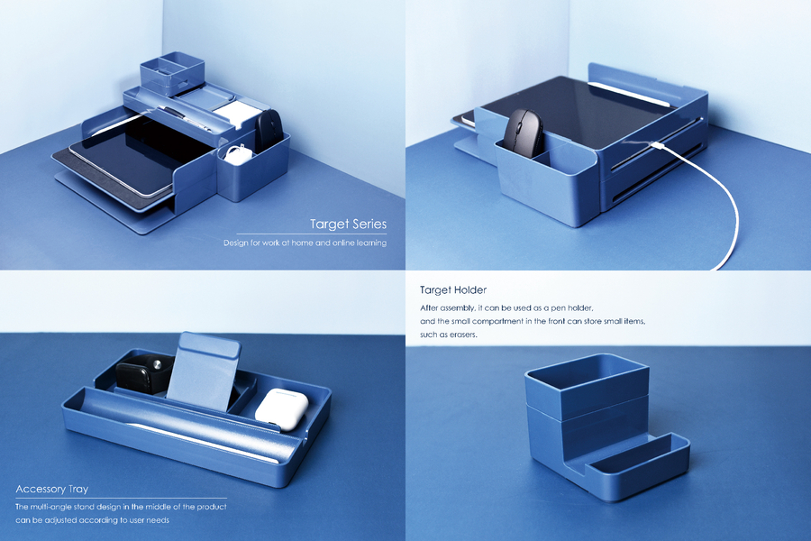 「重新定義公文架」的角度切入,我們透過市場調查與實地觀察發現,現代辦公除了紙張的使用外,更常使用的是平板電腦以及筆電,因此我們以平板為核心進行使用、充電與收納的整合設計,改變公文架的傳統定位。