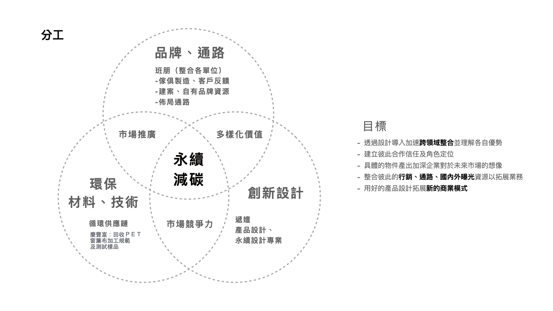 - 加強公司內外協作,並將綠色設計融入產品線,強化品牌差異與市場佔有率。