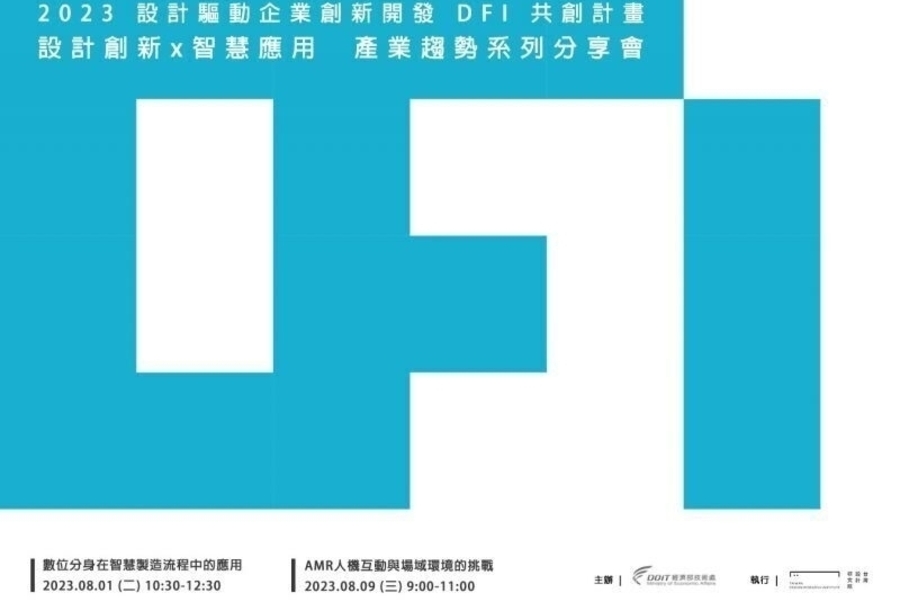 台灣設計研究院「2023 設計驅動企業創新開發 DFI 共創計畫」,特別邀請智慧製造、智慧機械產業專家擔任本次分享會主題嘉賓,提供數位分身、智慧製造、自主移動機器人(AMR)等應用領域創新機會與產業發展趨勢。