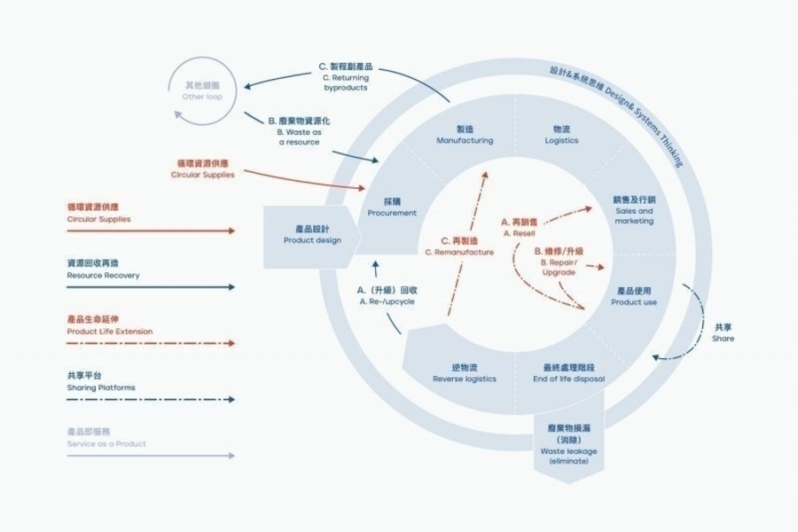 - 為內循環設計:運用再生使用、共享、再製造和維修翻新後再利用等方法,優先考慮可內循環的組件,透過設計易於維修或再製造的產品,或建立新商業模式以實現共享,為自己和客戶或產業生態創造新的價值。