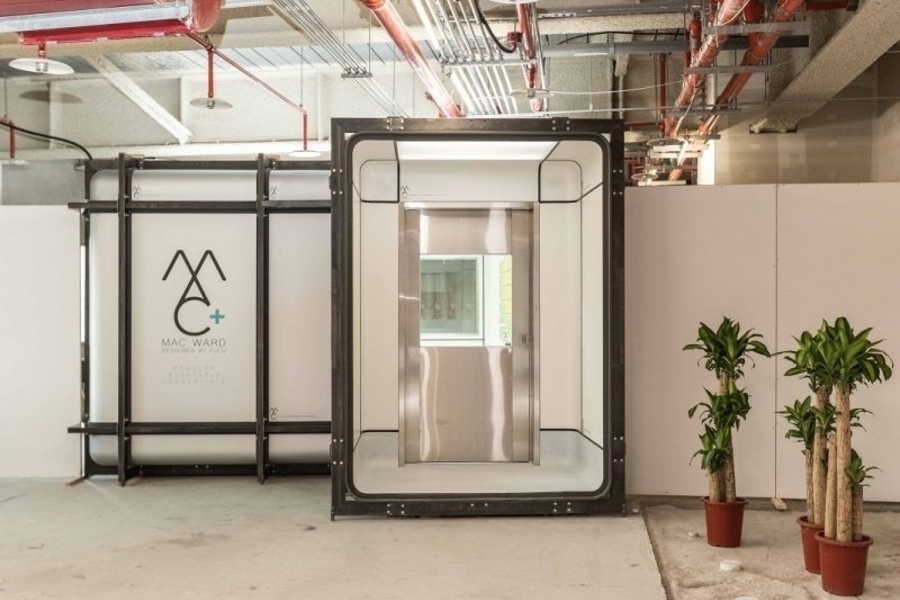 同時,國內九典建築師事務所以「保護醫護」為設計概念,兼顧防疫思維、醫療品質與循環設計,聯合成大和跨領域企業團隊,建構了可在5天內快速搭建、擴充性高且低成本的負壓隔離病房 QurE,為未來做好準備。而善用循環設計的小智研發,和輔大醫院、經濟部合作,推出可在24小時內依需求靈活組裝出一般病房、加護和隔離使用的「MAC模組化病房」 (Modular Adaptable Convertible,可轉換模組)。除了採用環保材質、可快速組裝拆卸及方便運輸外,更運用燈光和吸音材質營造減壓環境,支持病患及醫護的心理健康。