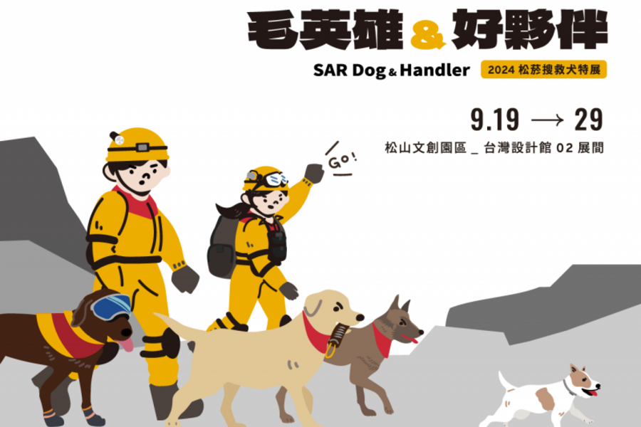 臺灣地理環境特殊,全球極端氣候加劇,災害應變格外重要。今(2024)年是921地震25週年,國立自然科學博物館921地震教育園區攜手內政部消防署及各縣市政府搜救犬隊,在臺北松山文創園區共同推出「毛英雄與好夥伴」搜救犬特展,透過搜救現場影像,表達對臺灣搜救犬的致敬,帶領觀眾深入了解這群「毛英雄」日常訓練及救援工作,展期自9月19日起至9月29日。