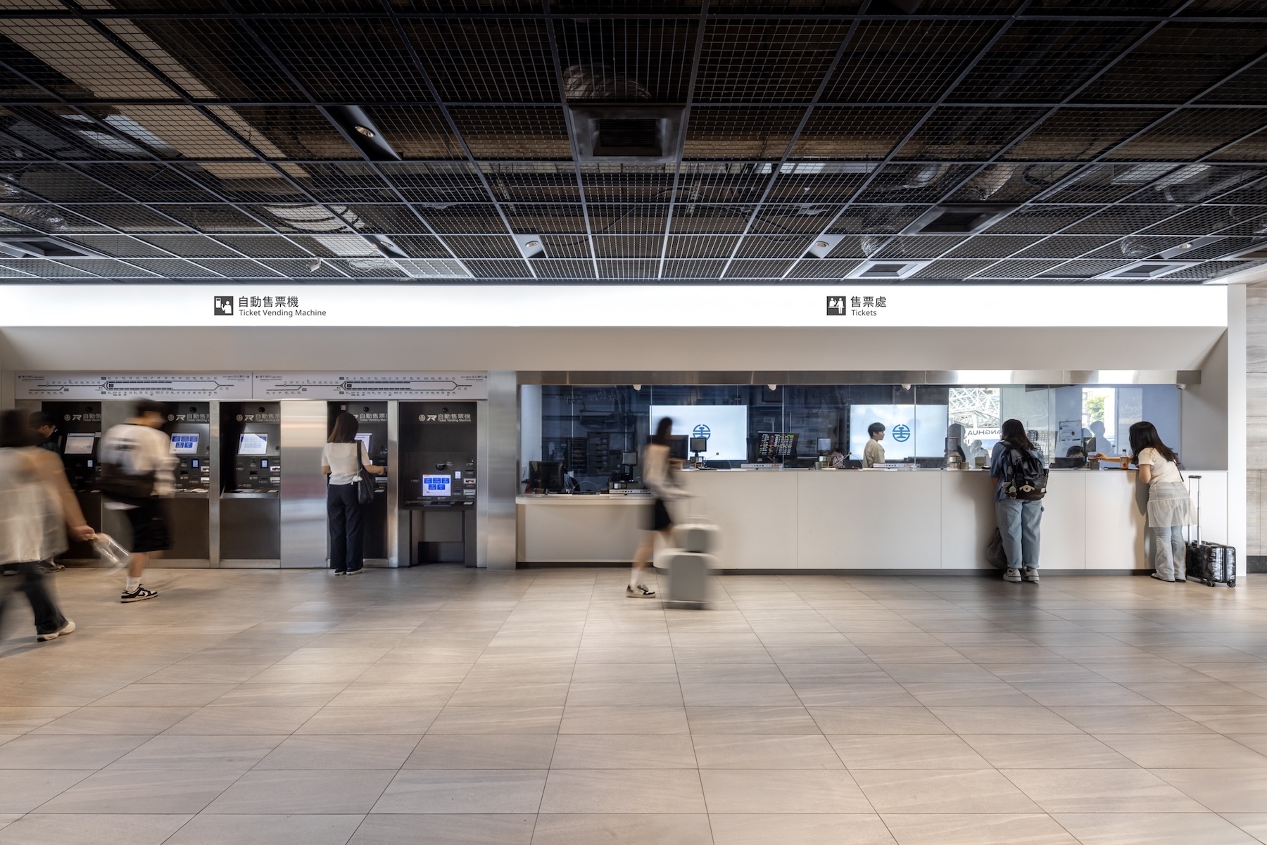 車站微改造透過重新規劃空間中的照明與色彩,並以一致的設計語彙整合各個服務窗口,讓指標系統和服務節點的辨識度提升──進到車站,指標燈帶串聯起車站的主要服務空間,使旅客在交通場站快速的節奏中獲得明確的導引。