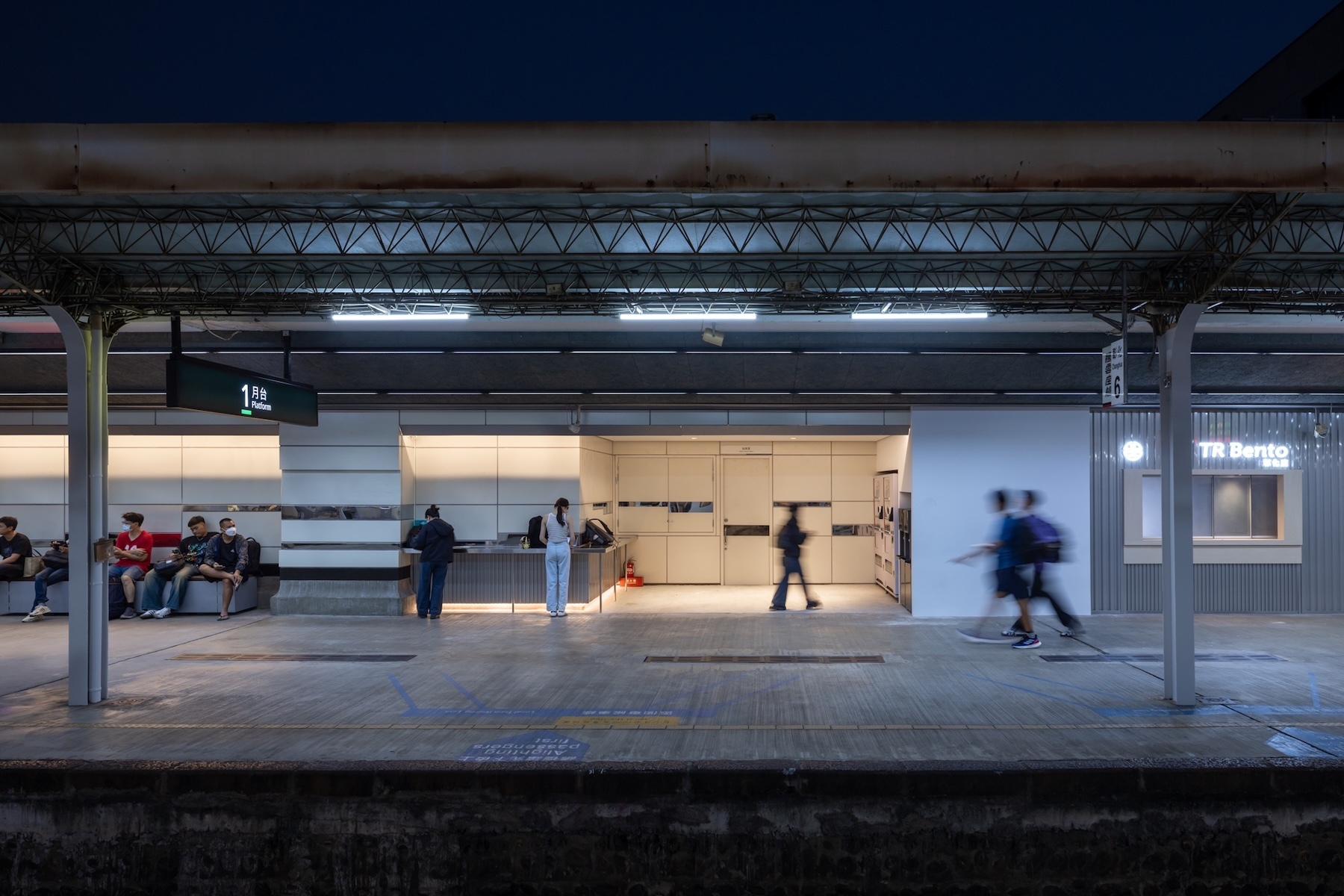 臺鐵便當門市亦為本次改造重點之一,新門市牆面以呼應「光華號」列車的金屬浪板,在外觀上賦予新氣象時仍結合能勾起旅客記憶的要素。相同的理念也使用在傢俱上,金屬的質感融入天花、燈具、充電桌等日常細節之中,並以簡潔現代的設計手法,重新詮釋經典的臺鐵枕木座椅,翻轉老舊的形象,卻又能彰顯歲月的紋理。