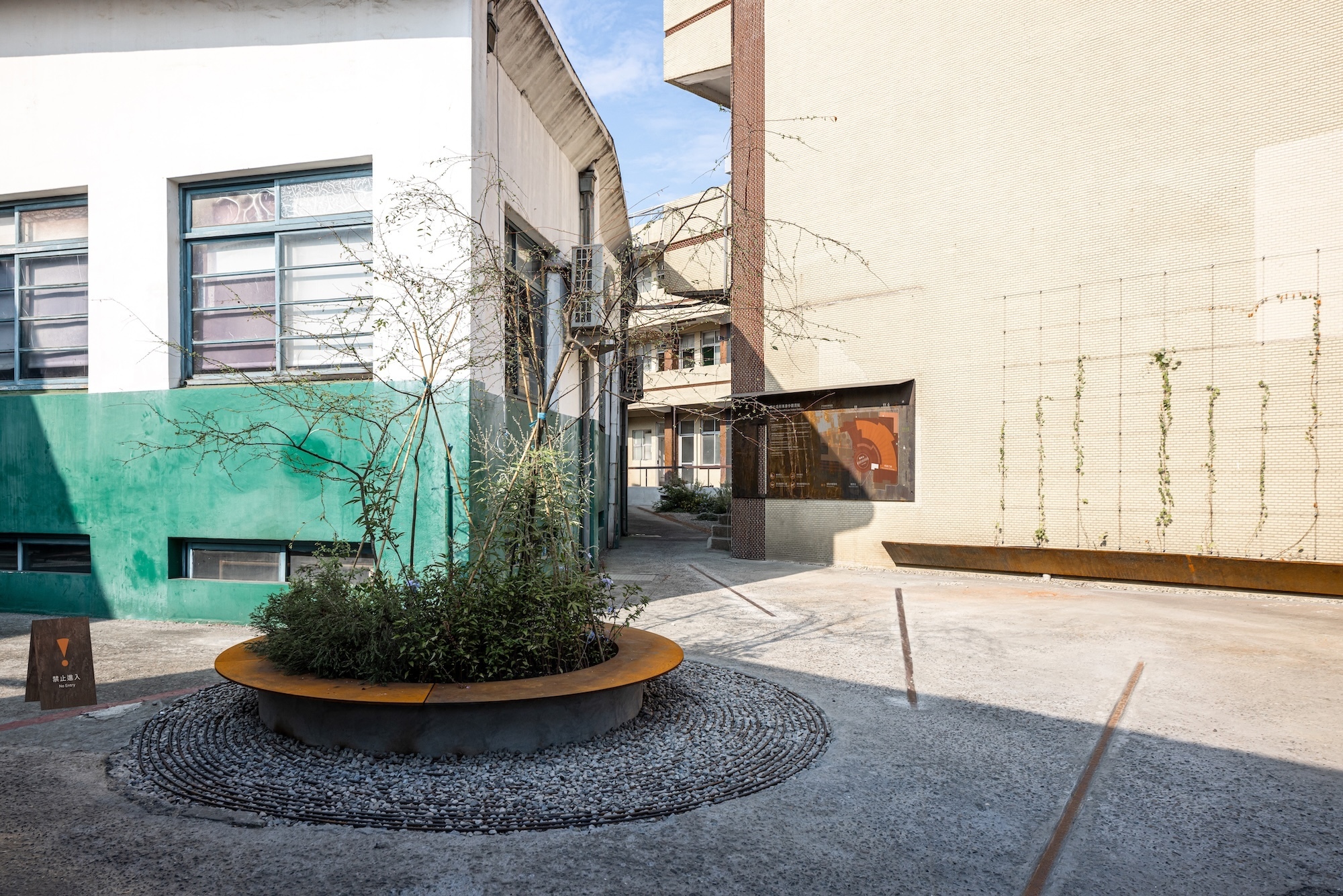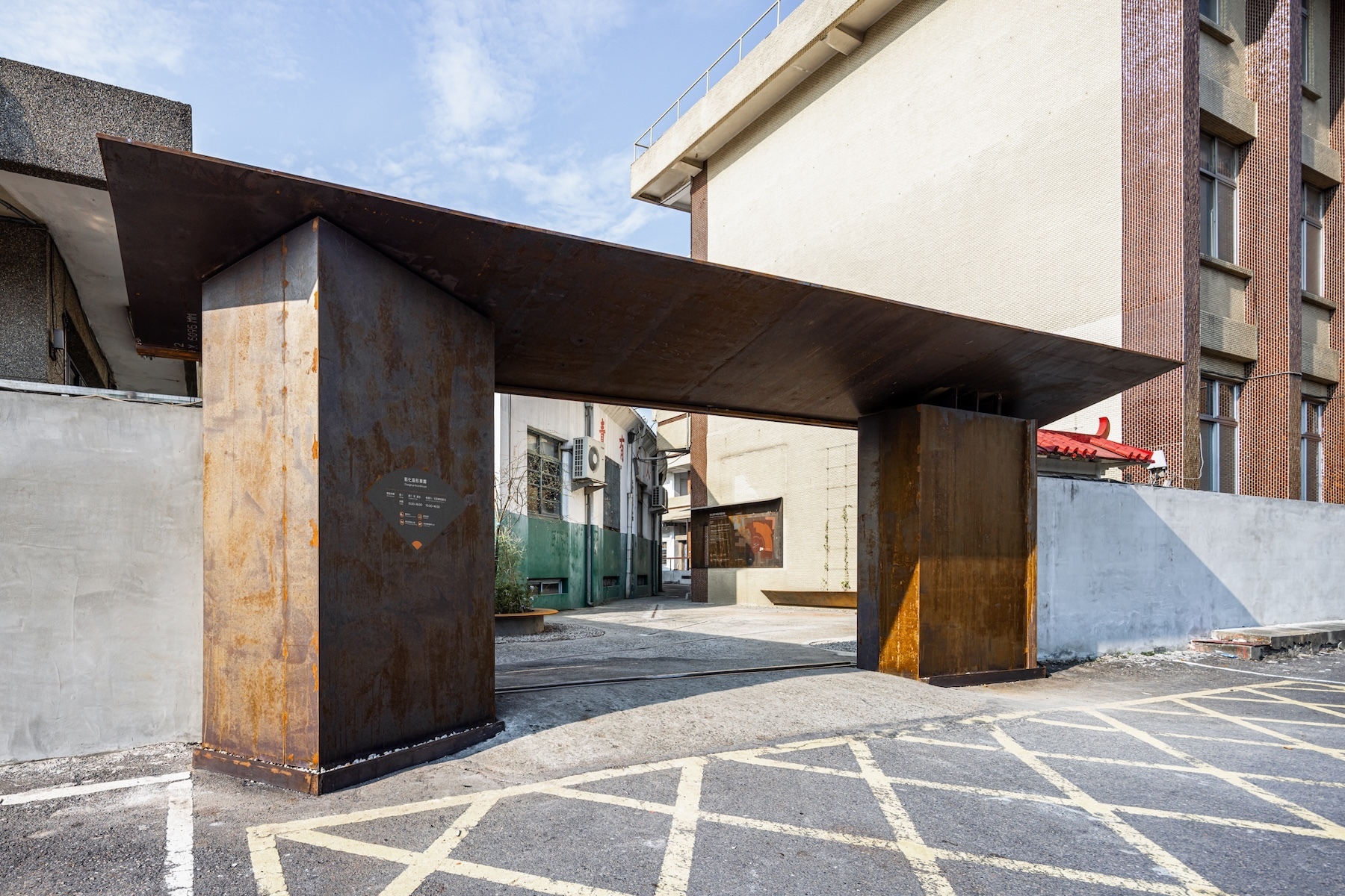 彰化擁有全臺僅存的扇形車庫,自1922年啟用至今,一直扮演著列車維修與調度的重要角色。在 2022 年的百年之際更被指定為國定古蹟,是罕見仍在運作的活古蹟。本次改造遵循《文化資產保護法》不改動外貌、不鎖固物件及古蹟不被遮擋的原則,透過整理環境色彩,移除非必要的張貼物與臨時構造,重現古蹟風貌;在參觀動線上,以耐候鋼為主要材料重塑大門、入口須知、賣店、出口等重要節點,統整空間氛圍,賦予整體環境清晰的主題,沿途點綴的綠植則以柔和的姿態緩緩隨時間生長,為工業場域增添一層自然的呼吸。