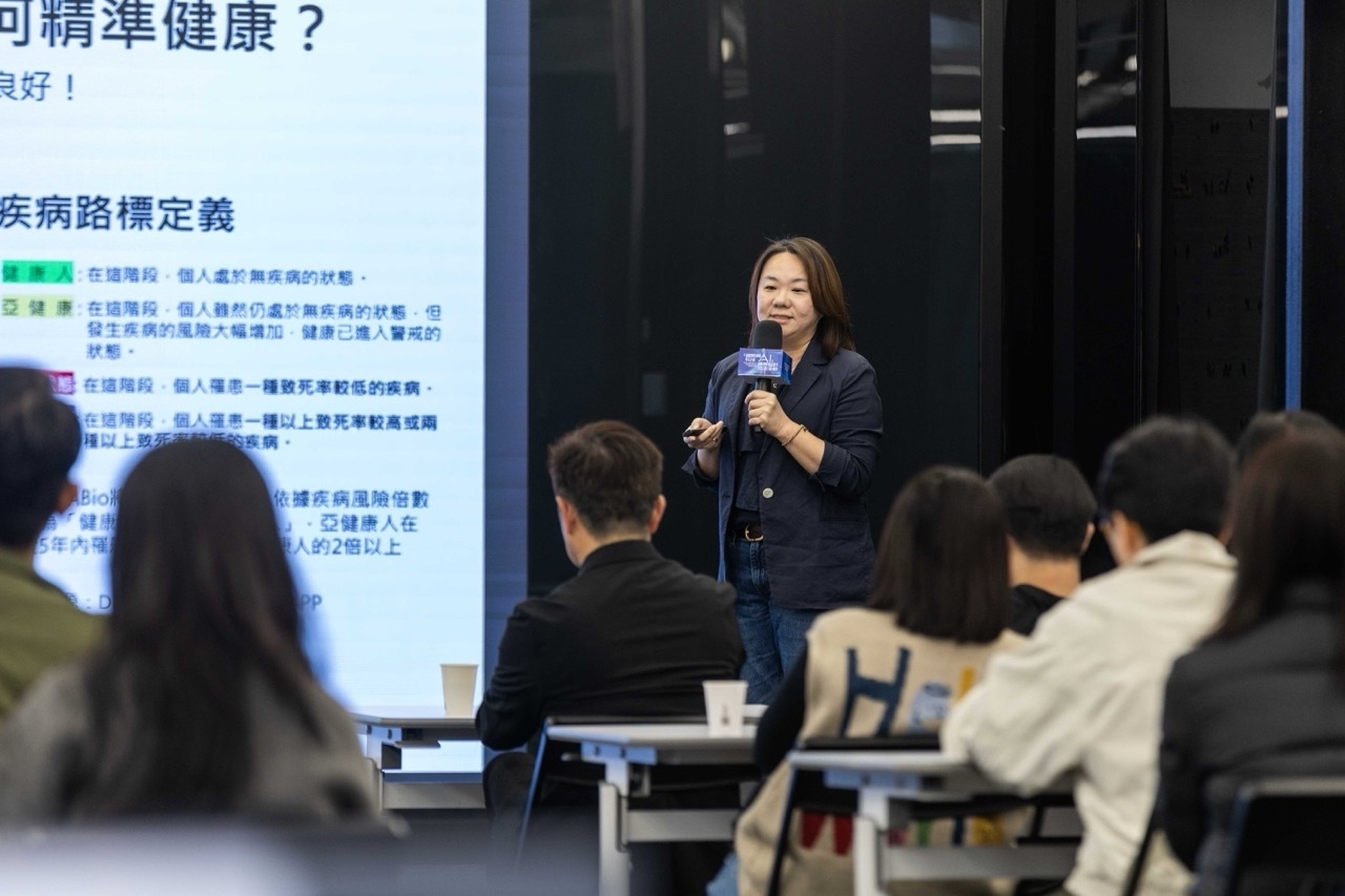 在健康科技中,AI 已能整合多項風險因子並建立個人健康模型。透過動態模擬、個人化建議與行為追踪,健康管理不再只是資料呈現,而是能促使使用者每天做出具體行動的機制。楊雅惠總經理(俊鴻數據科技)提出以數位孿生與AI數據分析為核心的醫療創新模式,推動醫療從「精準預防」邁向「精準預後」。他們以十年產業經驗為基礎,打造能持續追蹤健康、預測風險並提出建議的 AI 健康教練,讓精準醫療真正落地,而不再停留在報告中。楊總經理補充道:「參與本身就是一種決策。使用者會參與,是因為他們有明確的目標,並且知道自己想得到什麼樣的結果,就像飲食或運動計畫。好的方案必須符合人性,才能促使持續投入、黏著。」