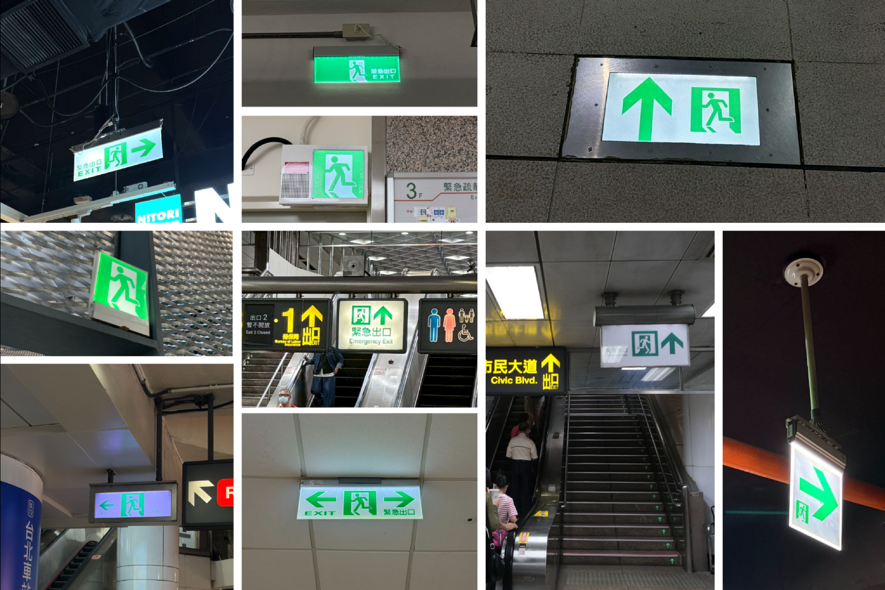 避難逃生標示設備(出口標示燈、避難方向指示燈)是公共場域中不可或缺的設施。為提升台灣避難引導燈具的產品完整度及與環境的相容度,台灣設計研究院與內政部消防署攜手推動「避難逃生標示設備再設計」計畫。本計畫期望透過設計導入,在符合消防安全法規的前提下,為產品注入現代美學,打造出能融入各類建築空間的示範設計。本計畫設計成果將無償授權給國內業者使用,期藉此帶動台灣消防器材產業升級,共同為大眾打造兼具安全與環境美感的公共環境。