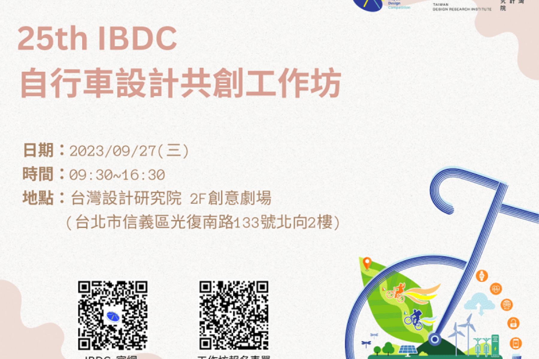 「IBDC全球自行車設計比賽」為自行車創新概念設計比賽,旨在建構創意概念及設計作品匯集平台,目前熱烈徵件中。期間也將辦理「25th IBDC自行車設計共創工作坊」,讓有興趣參加比賽但還不知道該從何開始的設計師,一起在工作坊中激盪不同想法,歡迎踴躍報名參加。