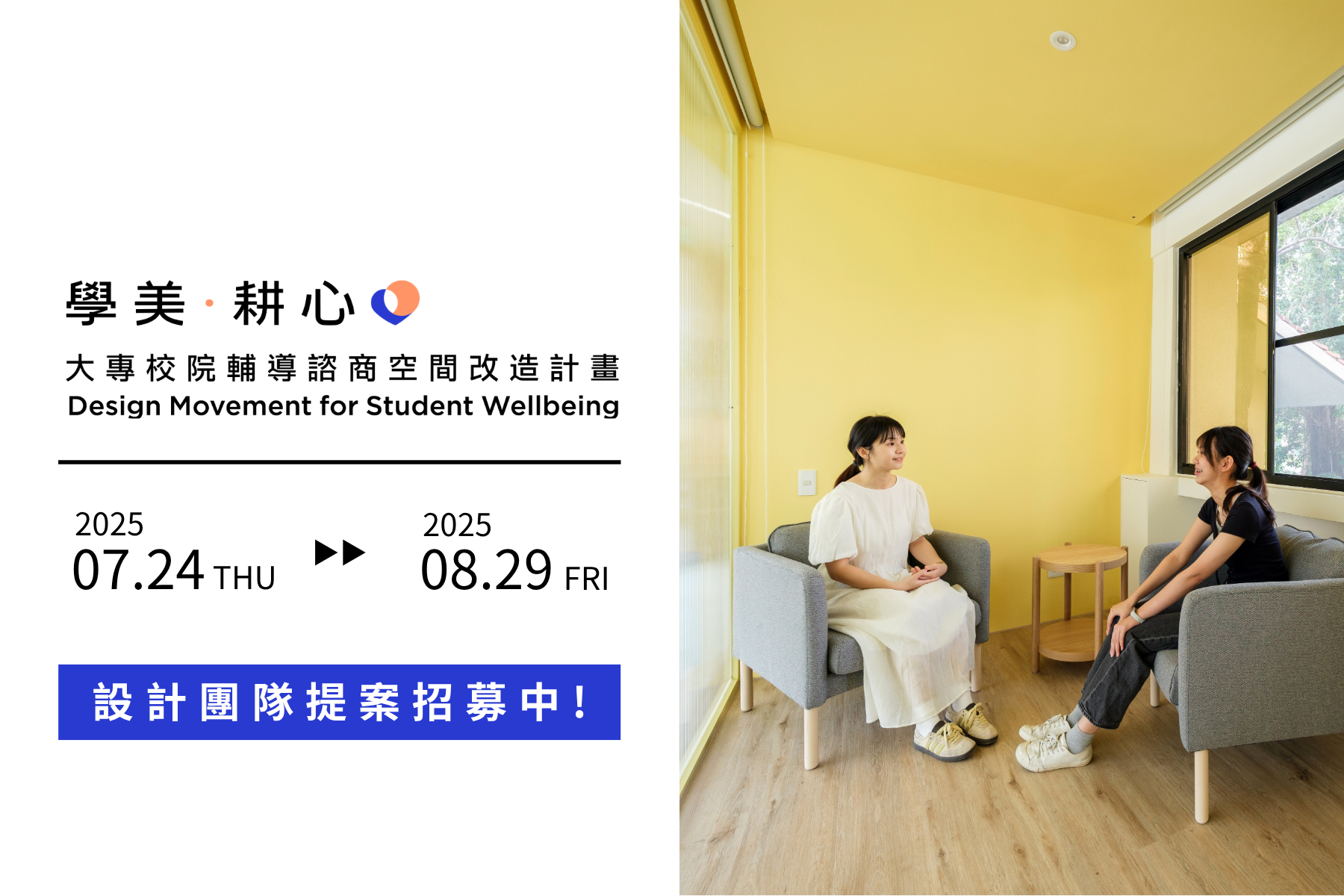 「學美・耕心」邁入第 2 年,規模再升級,空間更多元!全台 8 所大專校院輔諮空間,每案設計+施作高達 300 萬元,就等你來大顯身手!