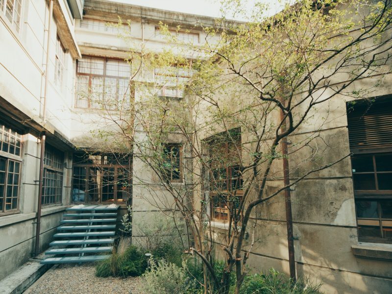 位於北側澡堂外,原為松菸澡堂對外的天井,地底下的熱水配管從鍋爐房加熱輸送至此。經由太研設計梳理與規劃後,將室內的閱讀氛圍延伸至戶外,透過座椅設置與流暢的動線,打造出植栽與陽光交織的舒適場域,讓讀者能在此享受戶外閱讀的寧靜片刻。
