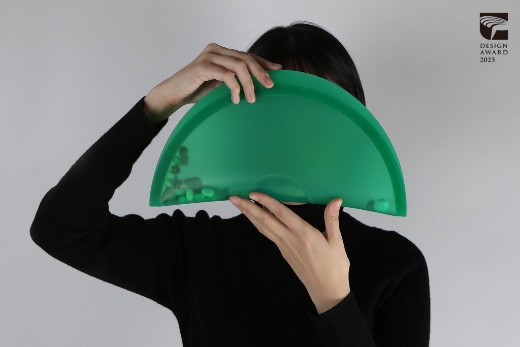 This reusable folding plate draws inspiration from the Italian dish calzone. Like calzone, it is designed to fold in half or be stacked in two. When folded in half, it serves as a container and doubles as a plate. The design team has developed a versatile dishware solution that replaces disposable items such as traditional disposable plates and plastic zipper bags. The glossy inner treatment prevents food stains and simplifies the cleaning process, while the outer surface features a matte texture to provide a softer touch.