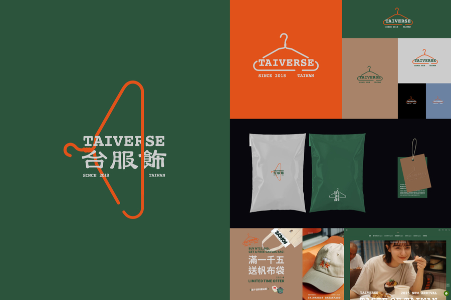 本公司負責為Taiverse進行品牌重塑、網頁重新設計,並長期進行商品開發、廣告及包裝設計。Taiverse的品牌標誌以衣架的形狀作為設計核心,當旋轉90度時,其輪廓呼應著台灣的輪廓。彩色衣架是台灣日常生活中最熟悉的物件,承載著臺灣家戶共同記憶的生活軌跡。不僅象徵著服裝品牌的本質,更以極具親和力的視覺語彙,展現台灣文化的溫度與獨特性。