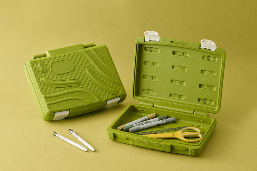 「易堆疊海廢萬用箱」外觀突破一般工具箱的工風格,用海流、海洋意象呼應材質的特殊性。此萬用箱是用回收漁網再製的海廢再生塑料以及消費後回收再生塑料製成,可有效去化減少環境廢棄物。此萬用箱從材質出發到外觀表現,透過設計,呈現出飽含海洋永續精神的循環產品。