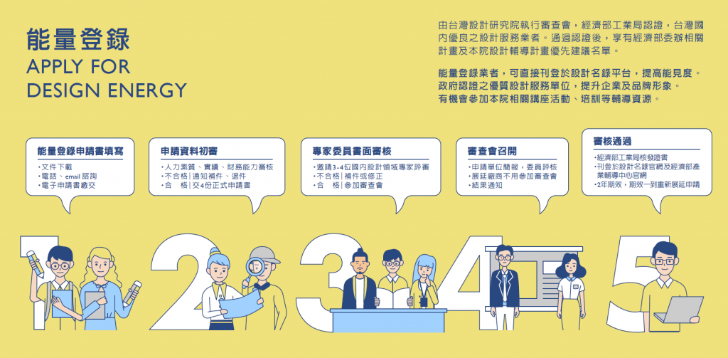 - 設計服務機構服務能量登錄申請書1份(設計服務業能量登錄平台下載)。