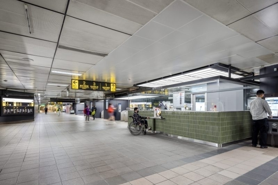 一、將原受兩圓柱包夾的詢問處退後2米、並由八角改為四角拓寬其面積並以發光均勻的平板燈減少反射情形也增加自明性;針對站務員工作環境及行動不便旅客的互動情形,也透過調整人因尺寸來友善工作環境及旅客服務。