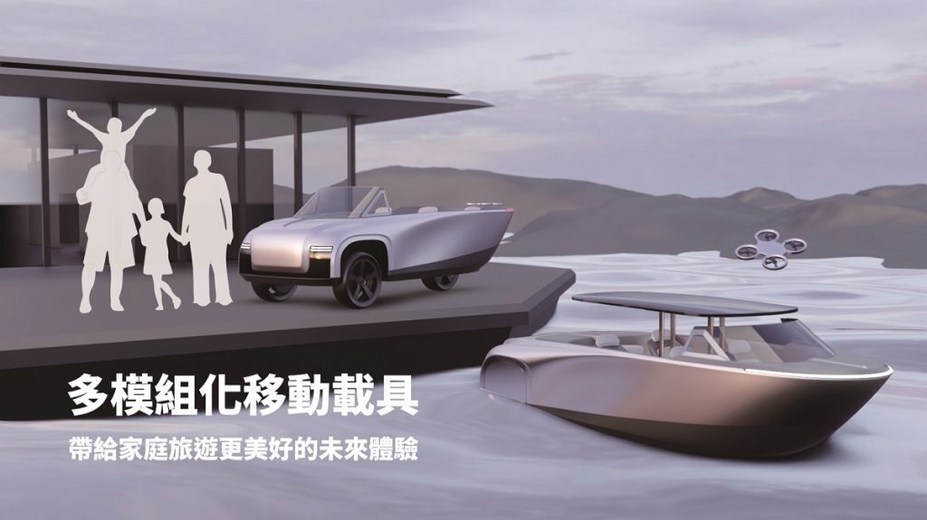 ▲ 【移動載具原型提案1】以親子旅遊情境出發,藉由智慧化、多功能、模組化的載具感受輕鬆愉快、方便的家庭旅遊體驗。