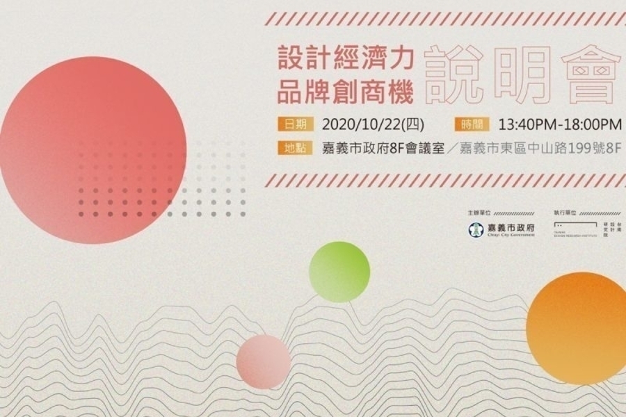 由嘉義市政府主辦,台灣設計研究院執行的「嘉義市政府設計經濟力產業輔導計畫」已於近日公告,並將於109年10月22日(四)在嘉義市市政府8樓會議室(嘉義市東區中山路199號)辦理本次計畫「設計經濟力品牌創商機」說明會,提供在地產業於設計後疫情時期,健全產業體質、提升質量及品牌價值的途徑。