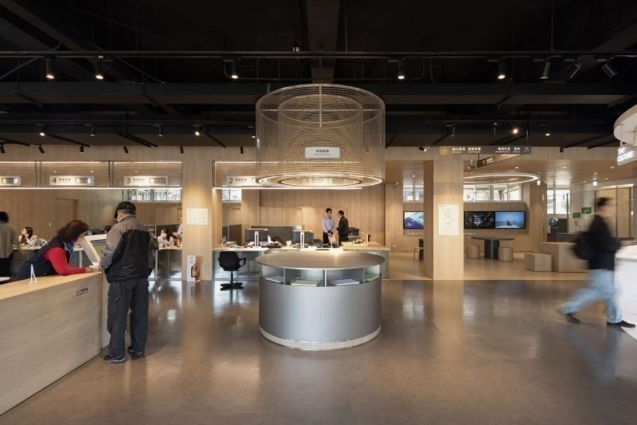 ● 提供民眾和職員舒適且安心的服務環境大廳採用溫潤的木材質感、搭配俐落的金屬細節、簡約的色彩及明亮的照明計畫,打造專業的服務形象及舒適放鬆的公共環境,並提供清晰的資訊標示及叫號提醒,讓民眾能安心的等待及使用。