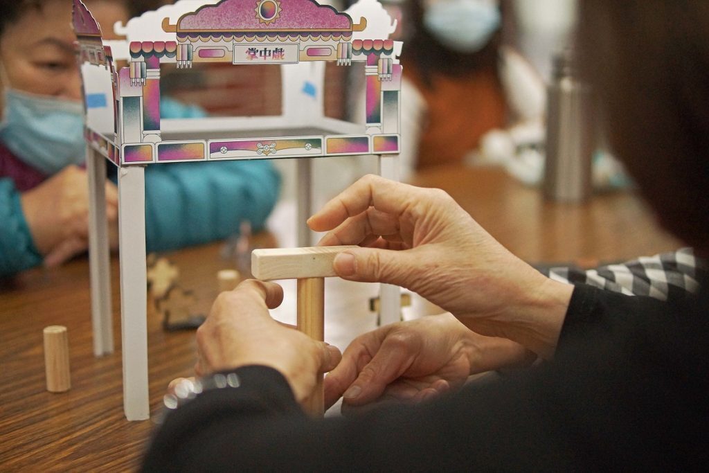隨著科技的發展與娛樂的多元化,布袋戲藝術在世代的變遷下逐漸凋零,卻是長者們童年時的重要回憶,結合雲林在地傳統文化布袋戲,透過布袋戲的人物特性轉化為「口語」、「肢體」、「記憶」的問題,訓練長者各方面的能力,並利用堆疊積木的方式,訓練長者空間感與抓取,活化腦力、增進儲備認知能力。