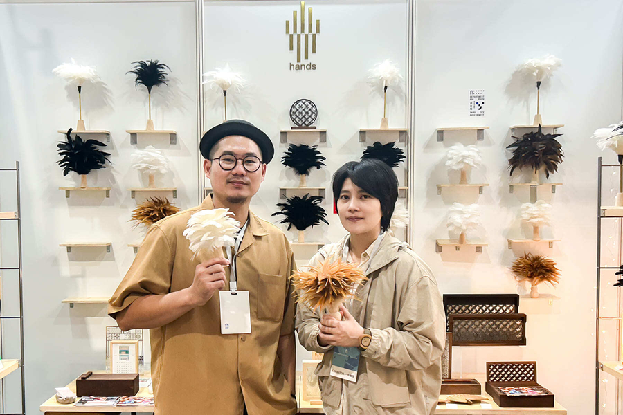 「我們一直在追尋一件事,就是讓國際看到我們的作品時,能直覺說出——這是來自台灣的設計。」出自工業設計背景的手手負責人姜文中,談起創立品牌的初衷,語氣堅定。從早期接觸雞毛撢子、窗花,到近年開發香灰材料,他關注的,始終是如何透過設計語彙萃取在地文化,在西方設計邏輯與台灣傳統符號的對話中,重新定義「新台式風格」。