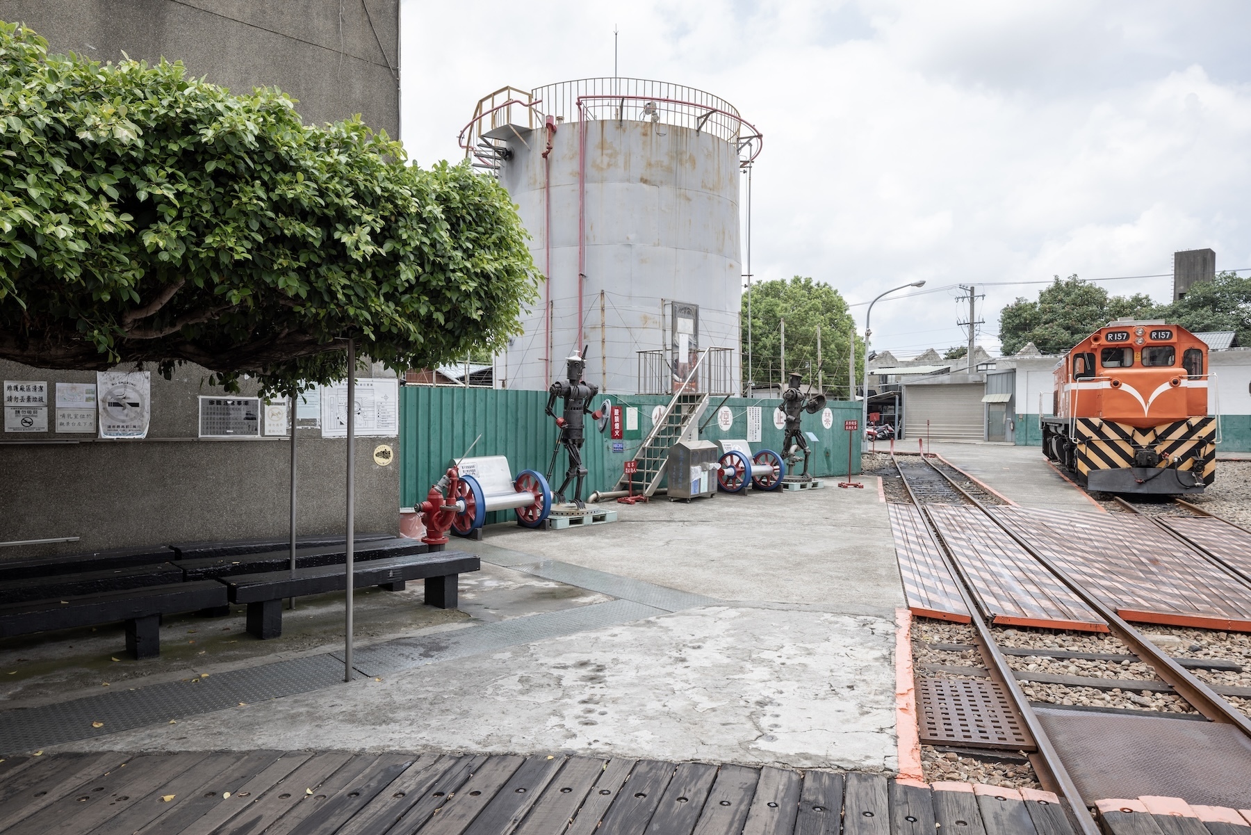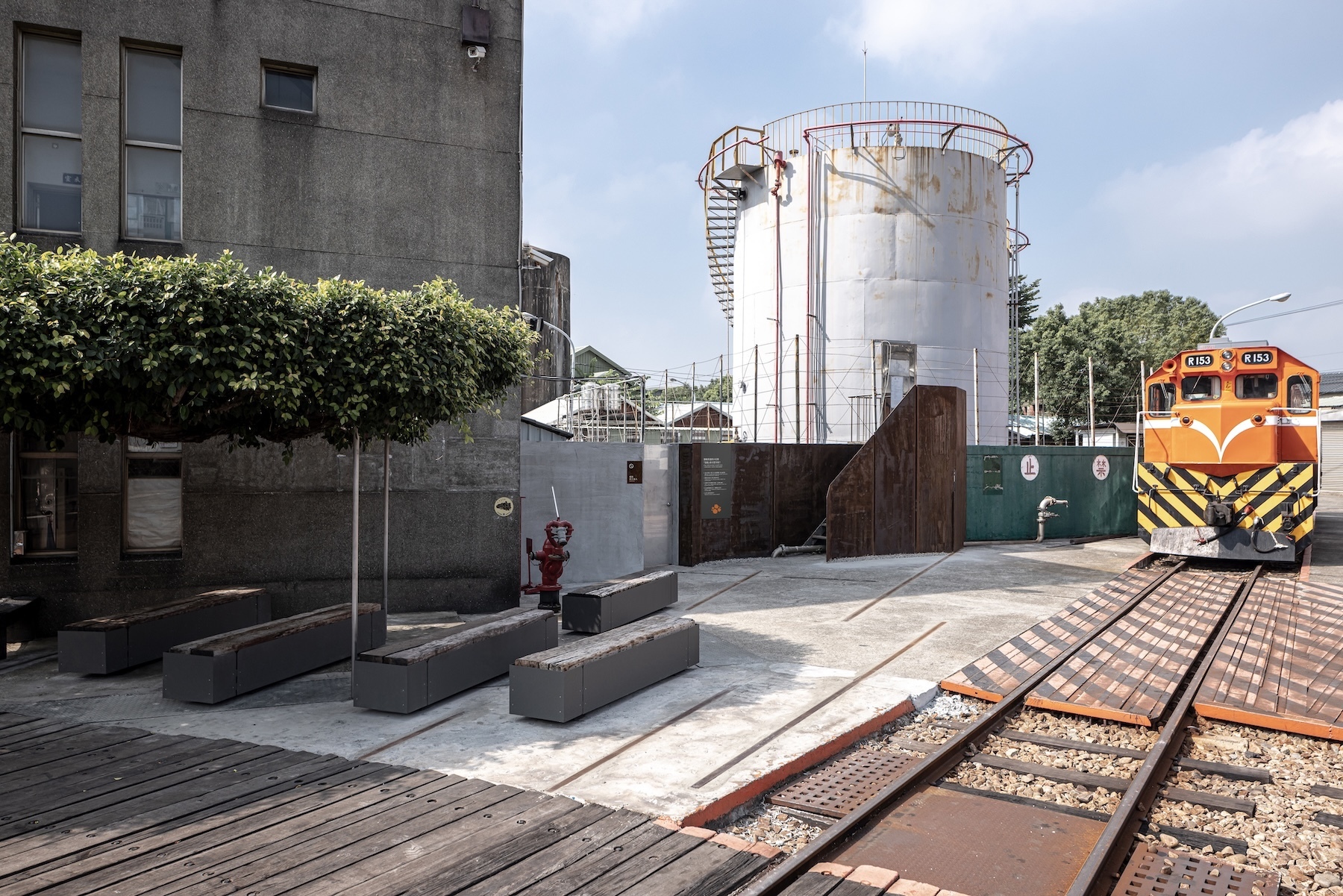 彰化擁有全臺僅存的扇形車庫,自1922年啟用至今,一直扮演著列車維修與調度的重要角色。在 2022 年的百年之際更被指定為國定古蹟,是罕見仍在運作的活古蹟。本次改造遵循《文化資產保護法》不改動外貌、不鎖固物件及古蹟不被遮擋的原則,透過整理環境色彩,移除非必要的張貼物與臨時構造,重現古蹟風貌;在參觀動線上,以耐候鋼為主要材料重塑大門、入口須知、賣店、出口等重要節點,統整空間氛圍,賦予整體環境清晰的主題,沿途點綴的綠植則以柔和的姿態緩緩隨時間生長,為工業場域增添一層自然的呼吸。
