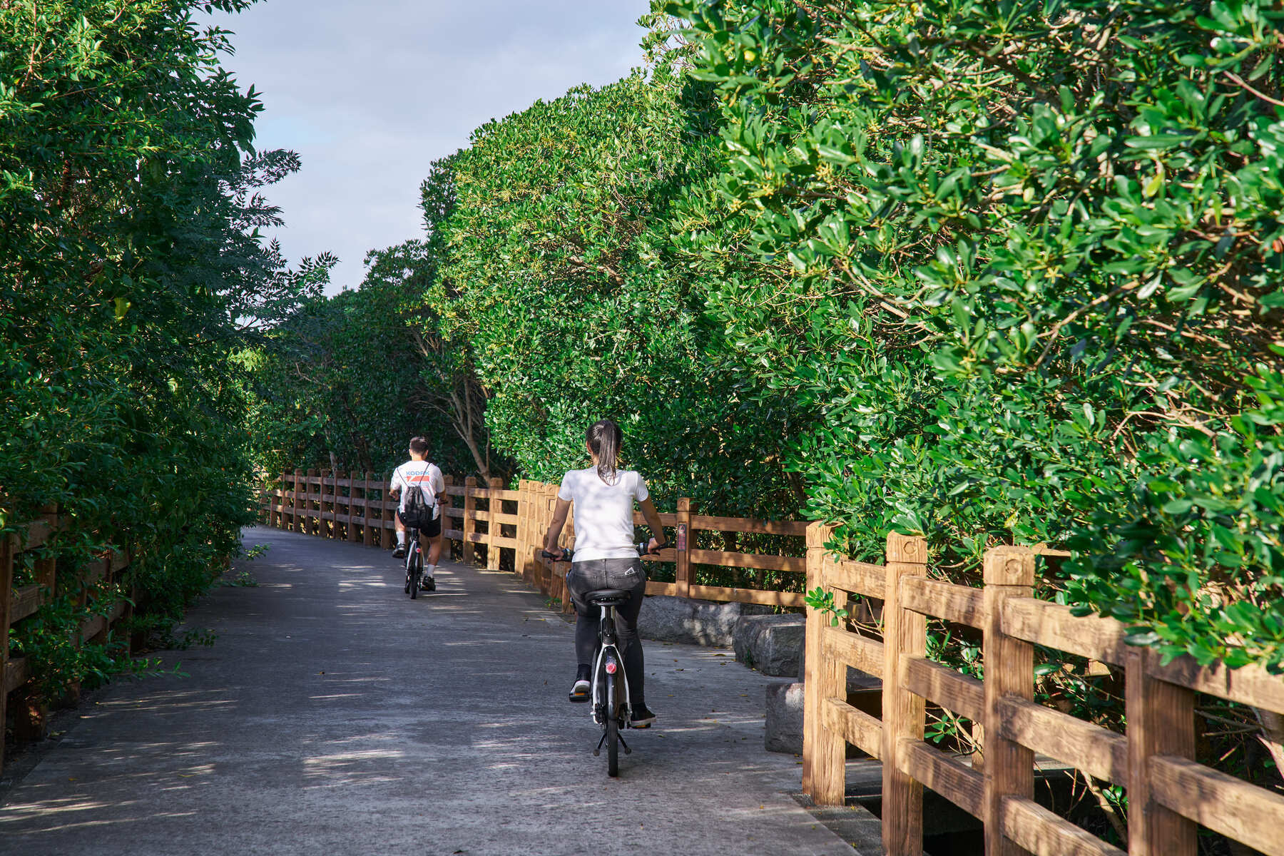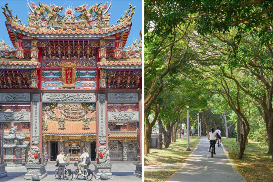 設研院指出,以位於八里渡船頭、已有兩百多年歷史的八里大眾廟為起點,八里場域以河岸自行車道為主軸,將潮汐地景、濕地生態與聚落故事串連成體驗節點。騎乘過程中手機會播放介紹豐富的自然生態、地景由來及地方聚落故事等,引導旅人慢速深度感受在地的生態與自然人文。體驗結束後,透過個人旅程軌跡的回播並重溫已收藏的故事卡內容,將左岸風景轉化為可回味、可再訪的地方記憶,形成八里專屬的慢行節奏。